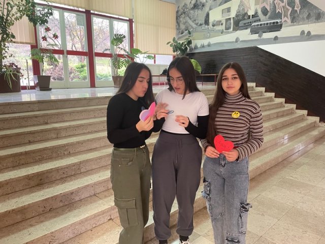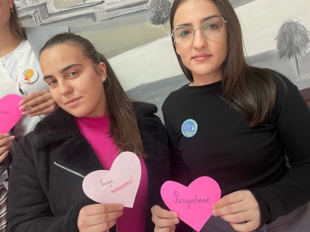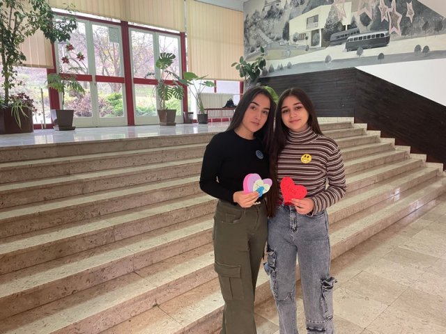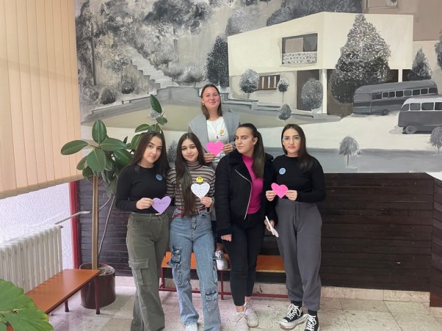 Чланови Ученичког парламента желели су да обележе овај дан на неформалан начин преносећи поруке о толеранцији на папирићима у облику срца различитих боја, поклањајући их лично осталим ученицима и професорима у холу школе.