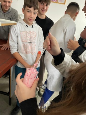 Уз присуство и помоћ својих старијих другара, време је испунио шарени свет хемије. Било је ту необичних, интересантних, магичних огледа, који су привукли велику пажњу и пробудили машту свих присутних. Уз бројне експерименте, кроз игру и забаву, успели смо да неосетно уђемо у чудесни свет хемије, и покажемо да су хемијске промене, свакодневна појава у нама и око нас, и да одговоре на многа питања можемо пронаћи управо у овој лепој, природној науци.