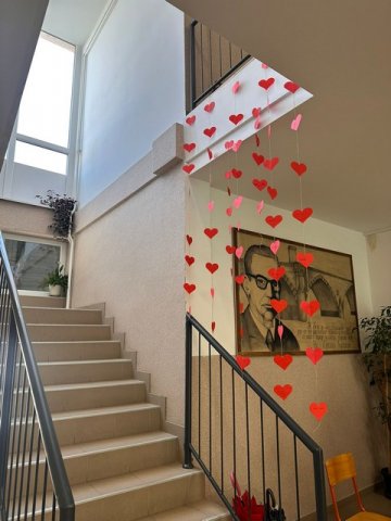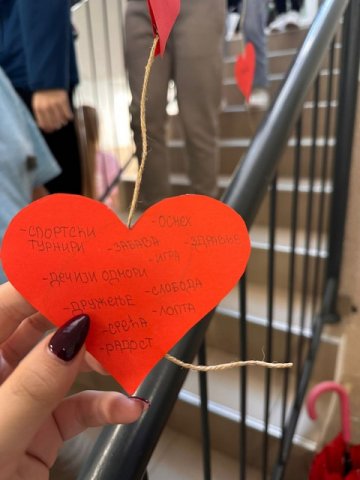 Чланови Ученичкиог парламента поставили су папирна срца са асоцијацијама на тему „Шта је за мене љубав“. Сви ученици имали су прилику да напишу своје мисли и осећања, чиме су допринели овој креативној иницијативи.