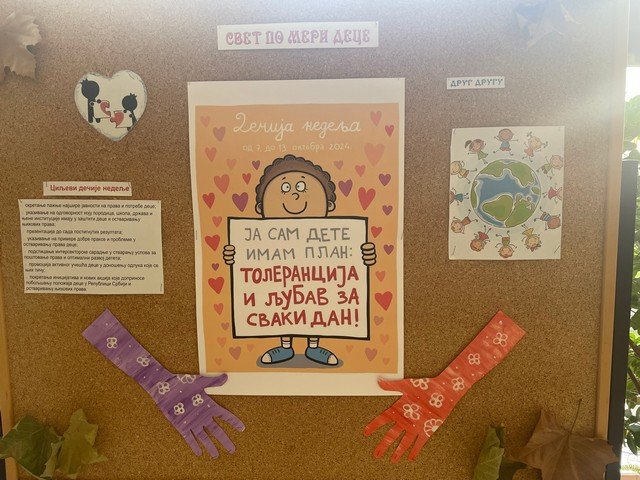 Дечја недеља има за циљ да скрене пажњу јавности на права и потребе деце, указујући на одговорност коју породица, школа и државне институције имају у заштити деце и остваривању њихових права. У нашој школи акценат смо ставили на примере добре праксе и проблеме у остваривању права деце, као и на промоцију активног учешћа деце у доношењу одлука које се њих тичу.