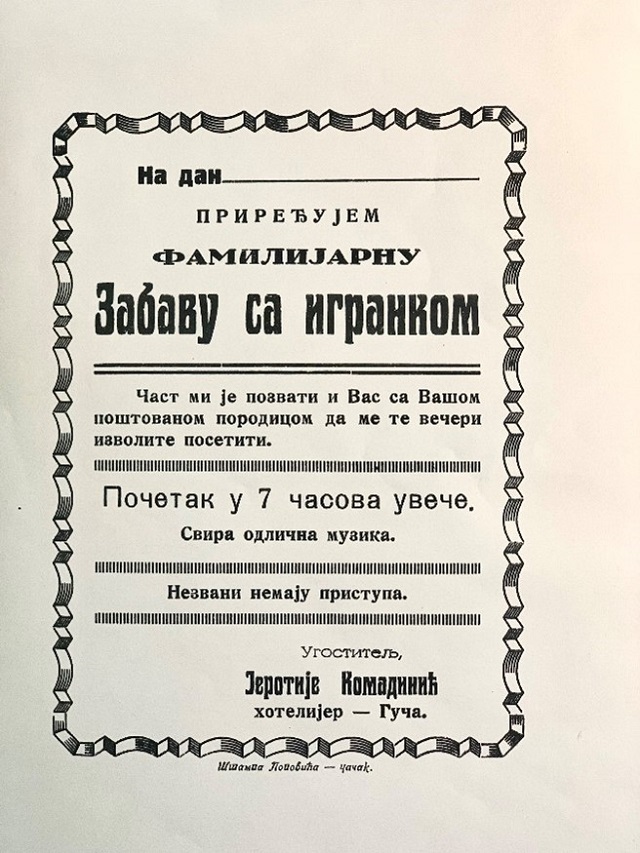 Draganina majka je poreklom iz Guče, iz porodice Komadinić, koji su se iz Lise doselili u Guču. Braća Jerotije i Radomir (Draganin otac), obojica hrabri ratnici i Solunci, između dva rata radili su kao ugostitelji. Najpre su imali svoju mehanu, a kasnije su u zakup uzeli Broćića kafanu u centru Guče. Bili su nadaleko poznati po svom ugostiteljskom poslu. Jedno vreme u toj kafani bila je knjižnica (biblioteka). Često su organiovali zanatske i porodične zabave. Prilikom bombardovanja Guče u Drugom svetskom ratu, 28. novebra 1941. godine srušen je krov na kafani koju su držala braća Komadinići.