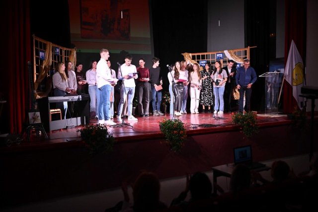 Сала Културног центра у Гучи била је попуњена, што говори да ученици Средње школе „Драгачево“ имају традицију у обележавању важних датума и јубилеја, али и да имају верну публику која их подржава у том раду.