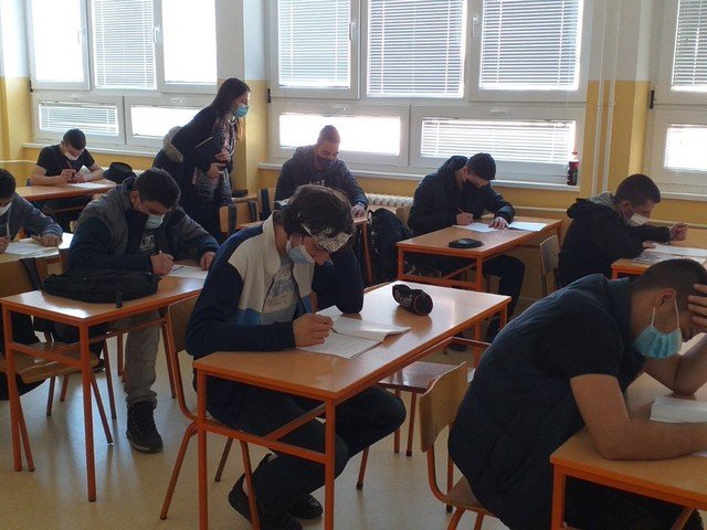 Ученици трећег разреда образовног профила Бравар-заваривач полагали су теоретски део из области заваривања у сарадњи са професорима машинске групе предмета: Бранком Славковићем, Драганом Анђелић и Биљаном Каранац.