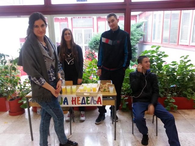 Друга активност се односила на хуманитарну акцију која је реализована током читаве недеље.Наиме, ученици су правили и продавали сокове цедевите и лимунаде у холу школе за време одмора.Сакупљени новчани прилог ће бити додељен неком од ученика наше школе, као то чланови Ученичког парламента буду одредили.Акција је наишла на леп одзив како ученика тако и наставника, па смо још једном показали да можемо бити креативни и хумани.