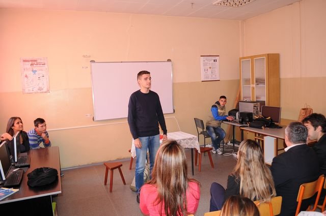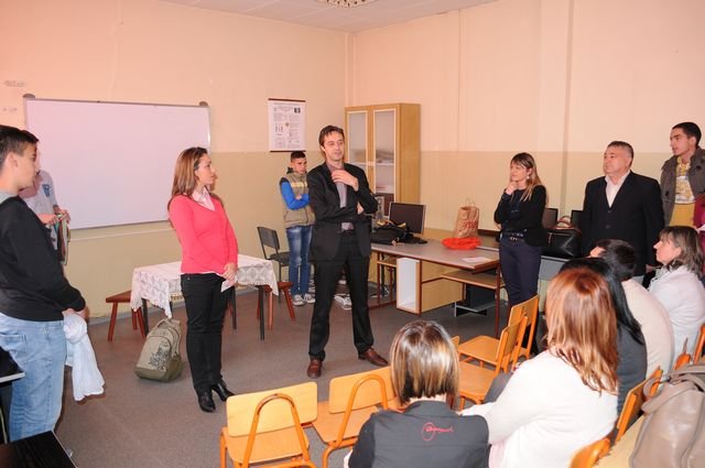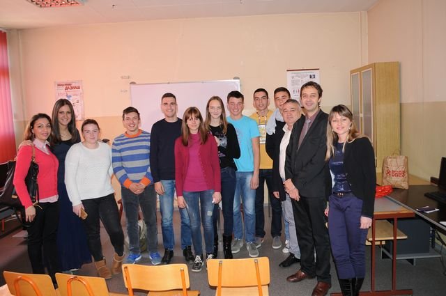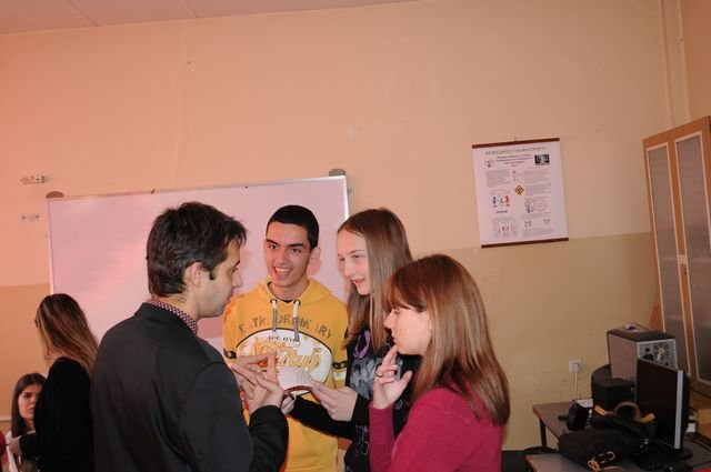 Поводом ове посете, ученици наше школе су у организацији директора школе Драгана Тановића и професора информатике Горана Станојевића, а у сарадњи са професорима француског језика Мајом Кићић и Маријом Рајић, спремили краћи програм који се састојао из песме на француском језику, савременог скеча, рецитала и интервјуа са господином аташеом. У поздравном говору господин Пето је изразио захвалност због добродошлице и задовољство због великог броја ученика који изучавају француски језик. У опуштеној атмосфери, ученици су направили интервју са гостом који им је одговорио на сва њихова питања.