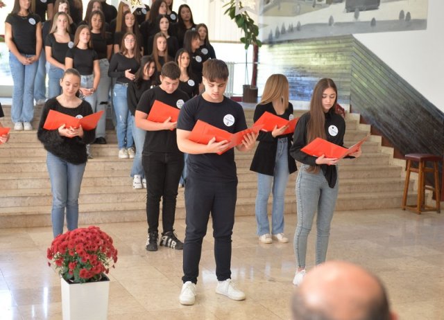 Сала Културног центра у Гучи била је попуњена, што говори да ученици Средње школе „Драгачево“ имају традицију у обележавању важних датума и јубилеја, али и да имају верну публику која их подржава у том раду.